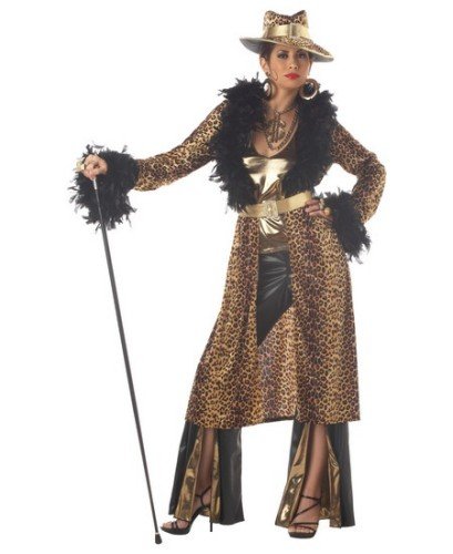 Yo, Style Maven! You Go Girl in Our High Class, Supa Pimp Mama Feather Trimmed Ensemble! (Shoes/Cane/Earrings/Necklace/Rings Not Included)