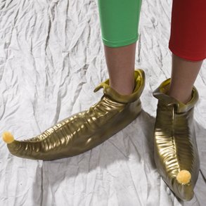 No Elf Would Leave the North Pole without their Shoes! No Elf would dare leave home without his slippers and neither should you. An elf costume is only complete when you have all the necessary quality accessories like this. Gold Rubber Elf Shoes. Yellow pom pom on tip of toe. One size fits most. Elf Stockings sold separately. Elf costumes and accessories from Century Novelty are perfect for any Christmas event. Put on our authentic Elf costumes for instant fun at your Christmas party or bring Holiday cheer to the mall as Santa's little helper. Product Categories > Costumes > Accessories